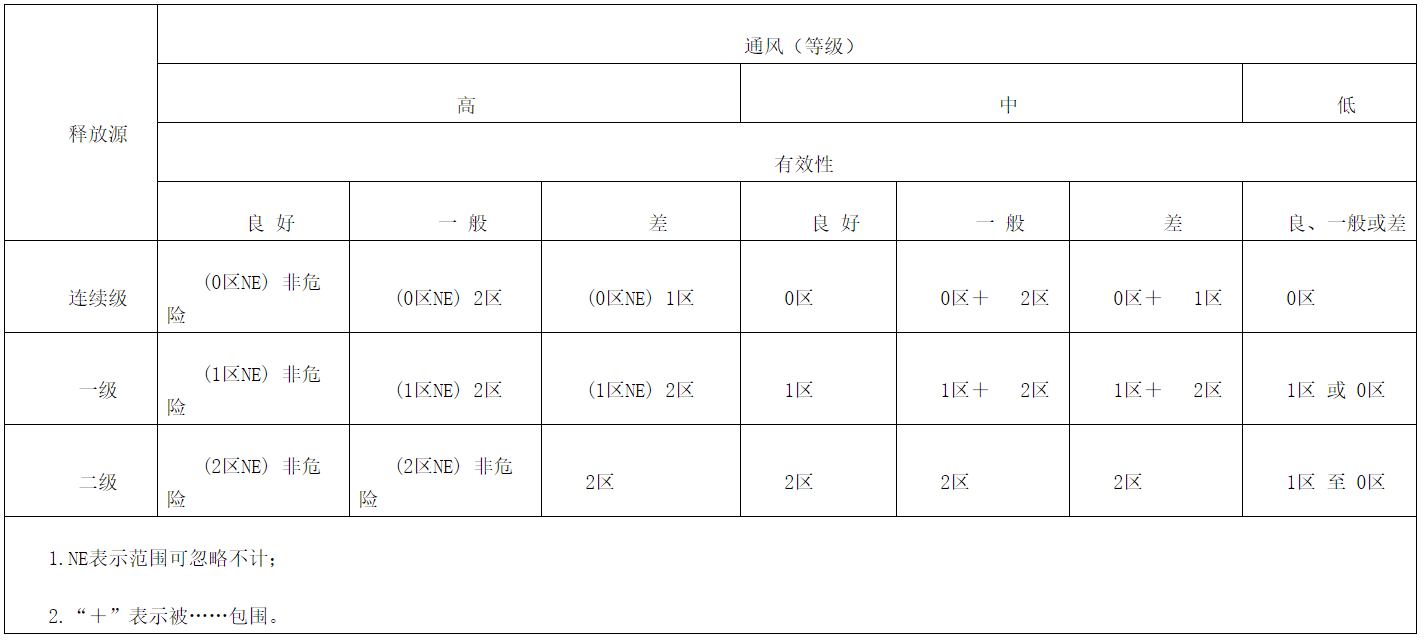 In principle, in the absence of any external conditions, a zero zone is formed around the continuous release source; Form Zone 1 around the first level release source; Two zones are formed around the second level release source.