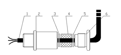 Among them:1—Coaxial cable2——Introducing terminals3——Upper gasket4—Sealing element5——Lower gasket6——Tighten the terminal
