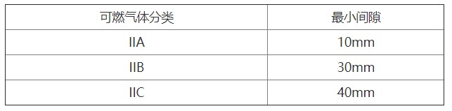 1.14 安裝設(shè)備時,應(yīng)注意防止隔爆接合面與固體障礙物(如鋼架、墻、護(hù)套、安裝板、管道或其他電氣設(shè)備)之間的距離不小于下表規(guī)定的數(shù)值,試驗(yàn)證明隔離距離可以更小的除外。